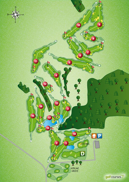 Hřiště bylo projektováno renomovanou rakouskou golfovou architektonickou kanceláří Hanse-Georga Erhardta ze Steyeru, který je jedním z předních evropských golfových architektů. Zavlažované hřiště, je obtížné a zajímavé přírodními překážkami, hlubokými bunkry a uměle vybudovanými vodními plochami.